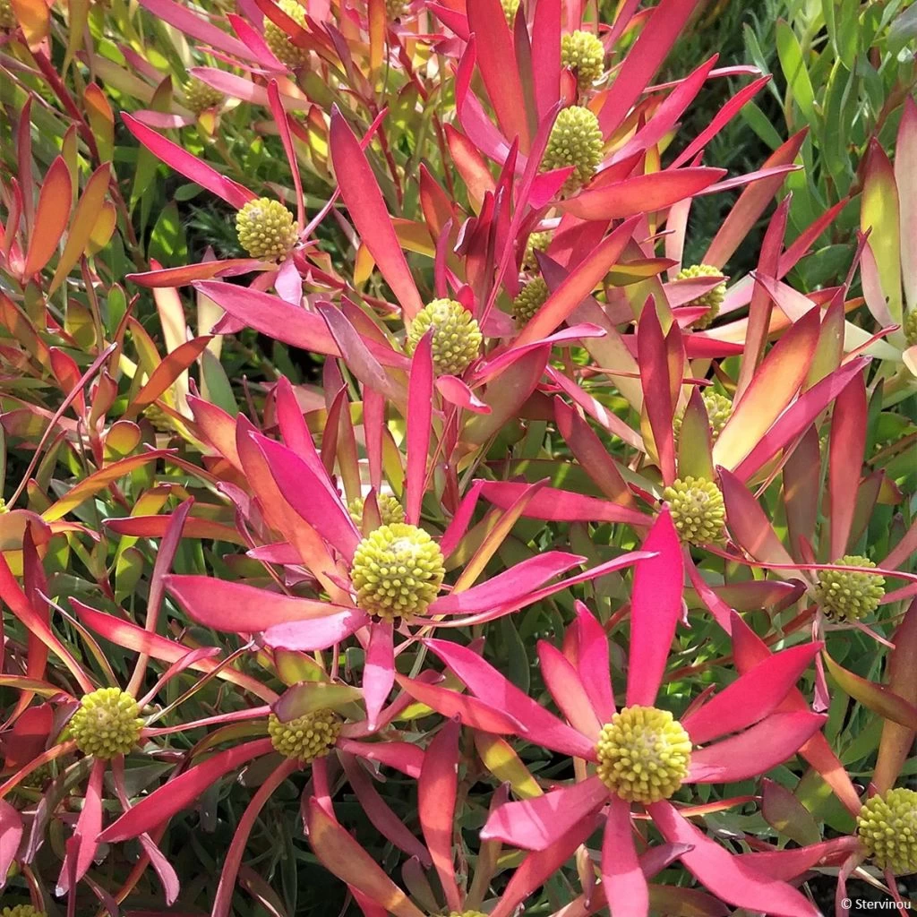 Le Leucadendron est un arbuste persistant d’allure très exotique apprécié pour sa longue floraison s’étalant du printemps à l’été, et son feuillage changeant remarquablement coloré. Rien à voir avec le jeu Miramagia, les vallées de Leucadendron et sa communauté magique !