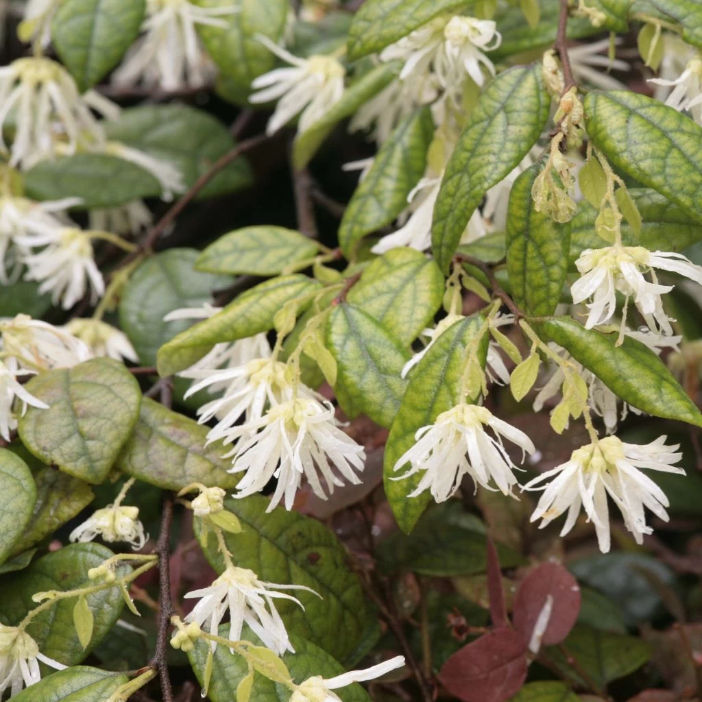 L’arbuste Loropetalum chinense est un ravissant arbuste qui a pour comme principal atout de fleurir dès la fin de l’hiver. En février-mars, ils se pare d’originales fleurs blanches légèrement parfumées. Les fleurs vont recouvrir tout le feuillage, persistant en climat doux. Elles sont garnies de pétales fins, en lanière, qui donnent à la fleur l’aspect d’une araignée. S’il s’avère relativement tolérant à la chaleur et à la sécheresse une fois bien installé, il préfère néanmoins la mi-ombre, les sols dépourvus de calcaire… et les climats doux !