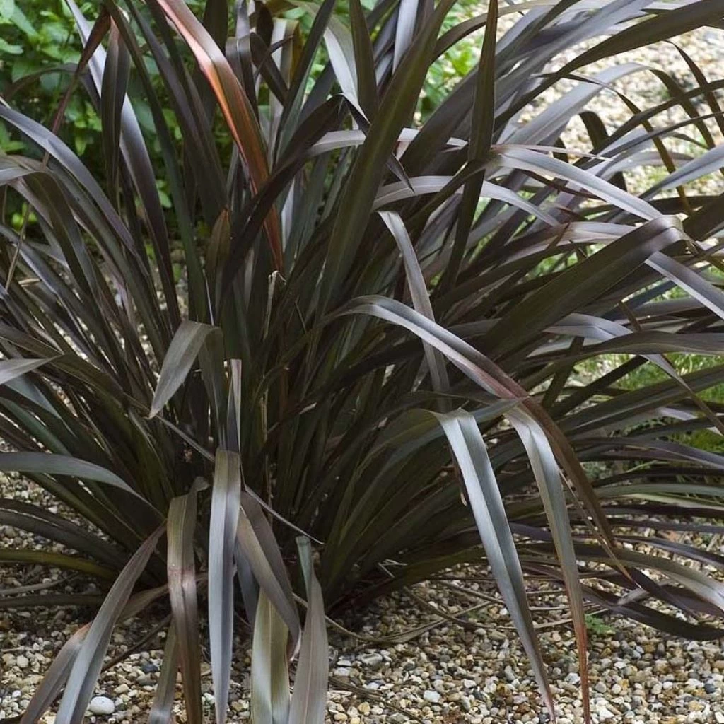 Ce Phormium est une plante d’une grande valeur ornementale, fait pour les grands massifs ou les grandes rocailles en climat doux. Il sera décevant en climat méditerranéen, mais somptueux sur la façade océanique de notre pays. Utilisé en isolé ou planté par groupe, il structure l’espace et donne un charme très exotique au jardin. Comme les grandes graminées, c’est une merveilleuse vivace pour un jardin moderne aux lignes sobres. En région froide, on pourra l’installer dans un très grand pot sur la terrasse ou le balcon, pour admirer sa prestance à la belle saison, et l’hiverner hors gel, dans une serre froide ou une véranda peu chauffée. Dans un jardin urbain, il adoucira les structures en béton. Pour une ambiance dépaysante et contrastée, on peut l’associer par exemple au Leptospermum scoparium, une boule rose à rouge fleurie en été, l’Helichrysum rosmarinifolium ‘Silver Jubilé’, au Pittosporum tenuifolium T’om Thumb’, ou encore à l’Olearia macrodonta ‘Major’, des plantes également venues d’Océanie, parfaites comme lui en bord de mer.