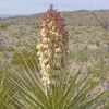 Originaire des zones montagneuses du centre Nord du Mexique, le Yucca rostrata est capable de résister à des températures de l’ordre de -16°C en sol très sec, et à de longues périodes de sécheresse estivale. C’est une plante arbustive appartenant à la famille des agavacées, de croissance réputée plutôt lente en sol pauvre et sec. Lorsqu’il est jeune, le Yucca rostrata forme une boule hirsute, très dense et naturellement peu ramifiée. Au bout de nombreuses années, il peut former un tronc, parfois double, de 3 à 4m de hauteur, couvert d’une ‘jupe’ de feuilles sèches, pouvant atteindre 30cm de diamètre. Chaque tronc porte une grande couronne sphérique large de 1m à 1,50m, composée d’une multitude de feuilles linéaires. Les feuilles d’un vert-bleuté, marginées de jaune, sont assez rigides, étroites, linéaires et terminées par une épine. Elles mesurent 40 à 60cm de longueur pour 1,2 à 2 cm de largeur. La floraison intervient après 3 à 4 années de culture, de mai à juillet en France. Chez cette espèce, l’inflorescence est unique et partiellement enfouie dans la masse du feuillage. Elle se développe en grande panicule semblable à un large chandelier. Les fleurs, en forme de cloches pendantes de 3cm de diamètre, sont blanches et de texture cireuse. Elles sont portées en panicules dressées et ramifiées mesurant 40 à 70cm de hauteur, et portées à plus de 4m de hauteur. Ces fleurs sont comestibles et ont un léger goût suave, agréable dans les salades estivales. Lorsqu’il est arrosé pendant l’été, ce Yucca rostrata montre une croissance spectaculaire.